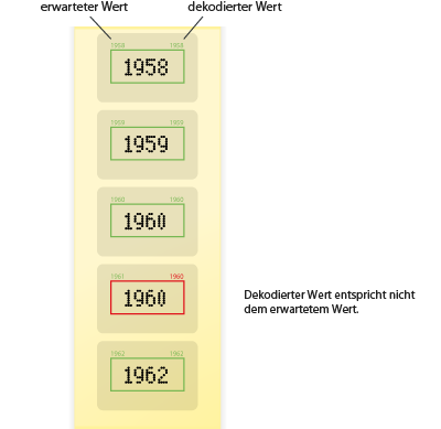 - Vergleich von menschlich lesbarem (gedrucktem) Wert mit maschinell lesbarem Wert;